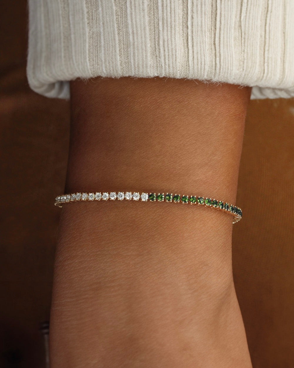 Art of Asymmetry Diamond and Emerald Tennis Bracelet