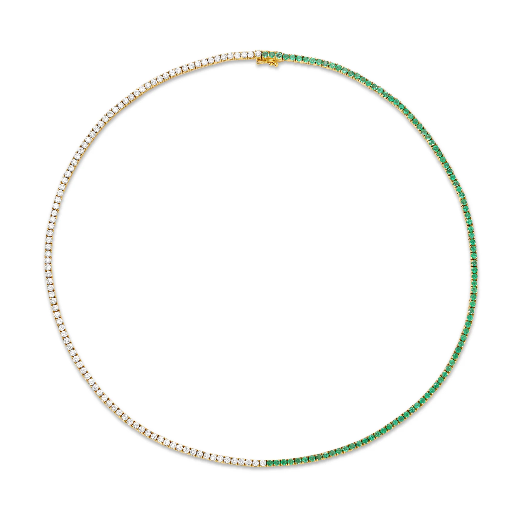 Art of Asymmetry Diamond and Emerald Tennis Necklace