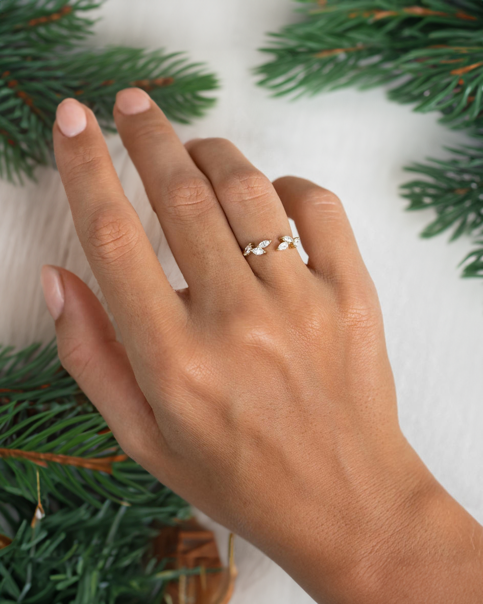 An open ring with 6 marquise diamonds weighing 0.6 cts.