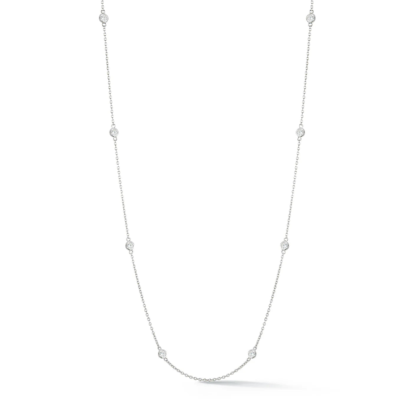 This classic diamond bezel station necklace style makes a beautiful everyday layering piece.