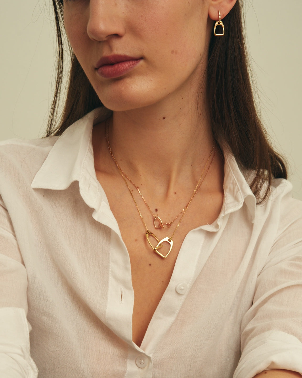 The iconic stirrups, interlocked and worn as a necklace.