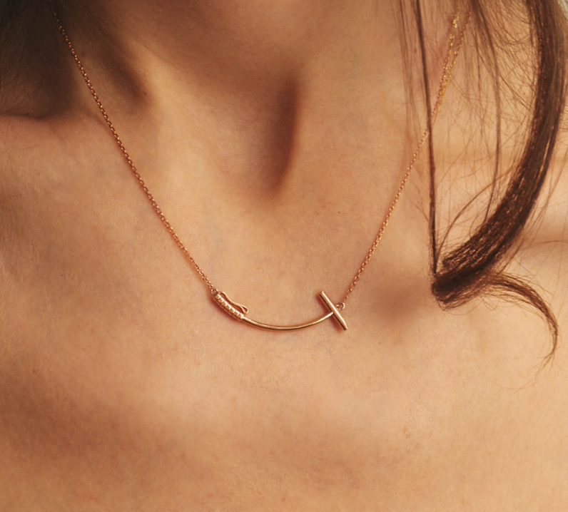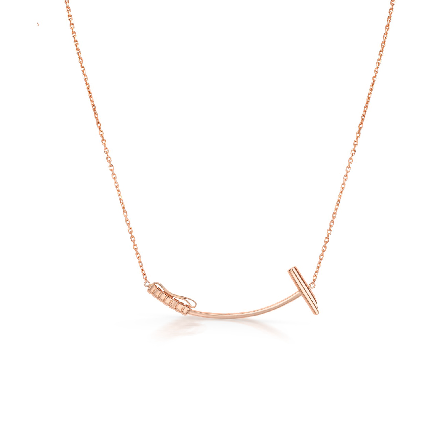 The curve of a polo mallet - mini. Crafted in 18k gold.