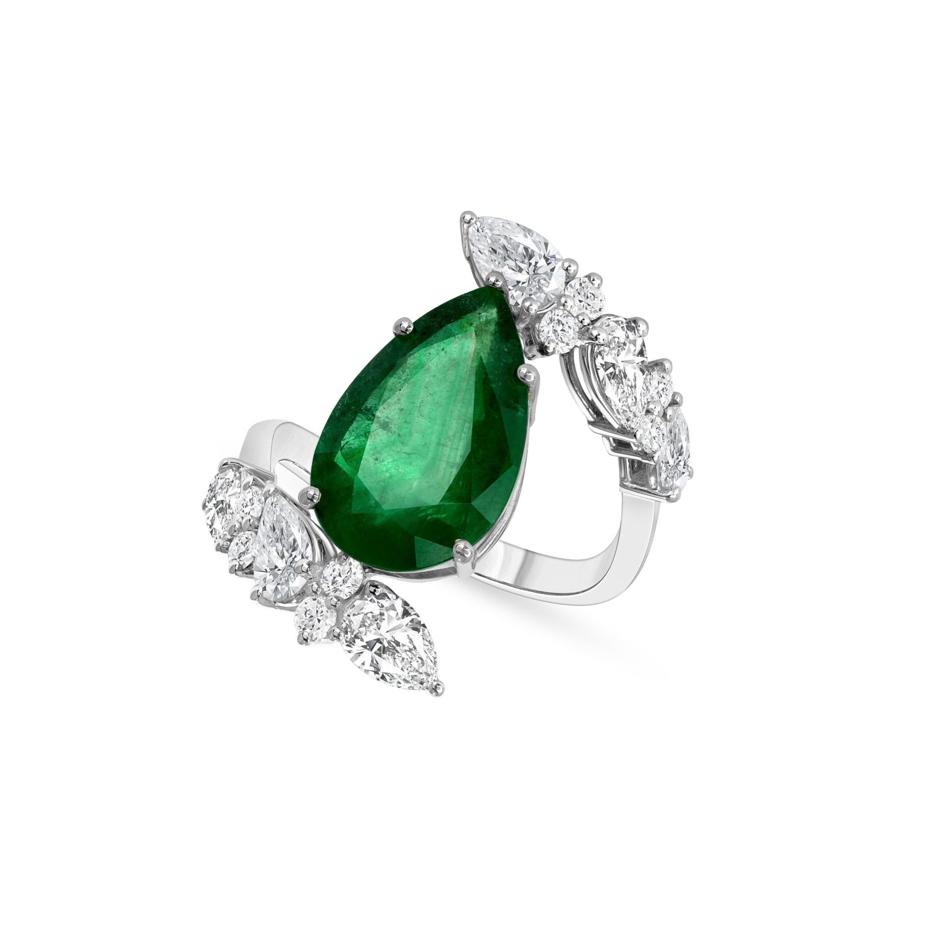 Split Emerald and Diamond Ring