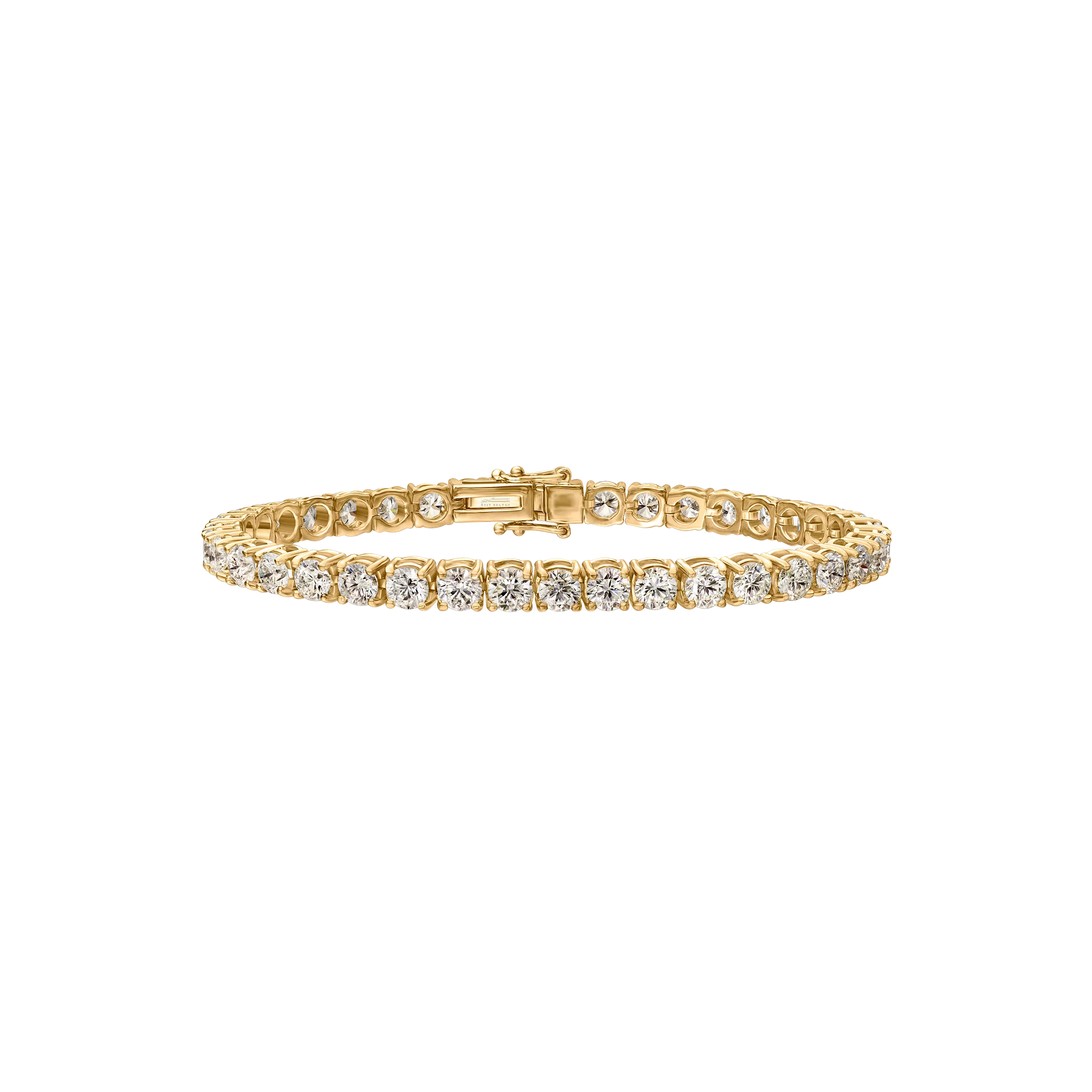 Prong set tennis bracelet with 40 round brilliant cut diamonds, weighing approximately 0.25 carats each.